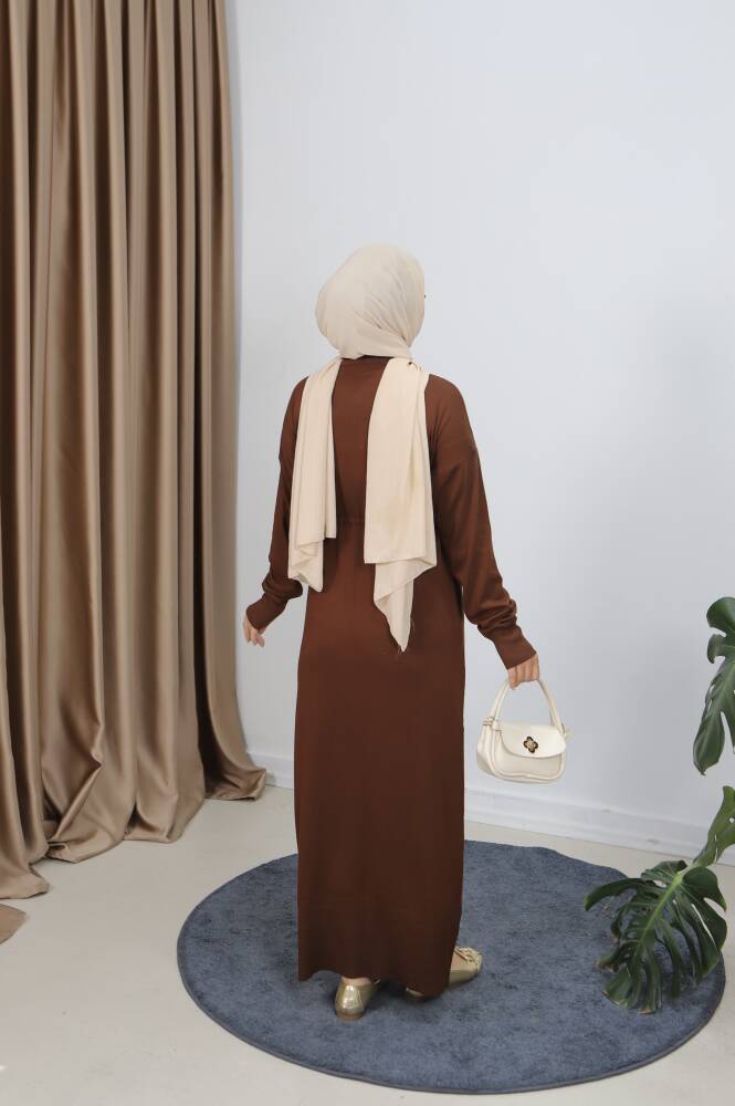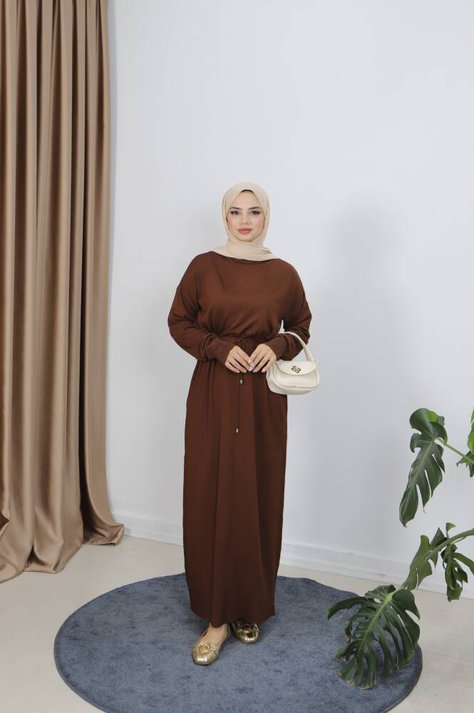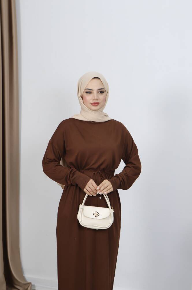 Acı Kahve Bağcıklı Merserize Elbise - 1Acı Kahve Bağcıklı Merserize Elbise - 2Acı Kahve Bağcıklı Merserize Elbise - 3