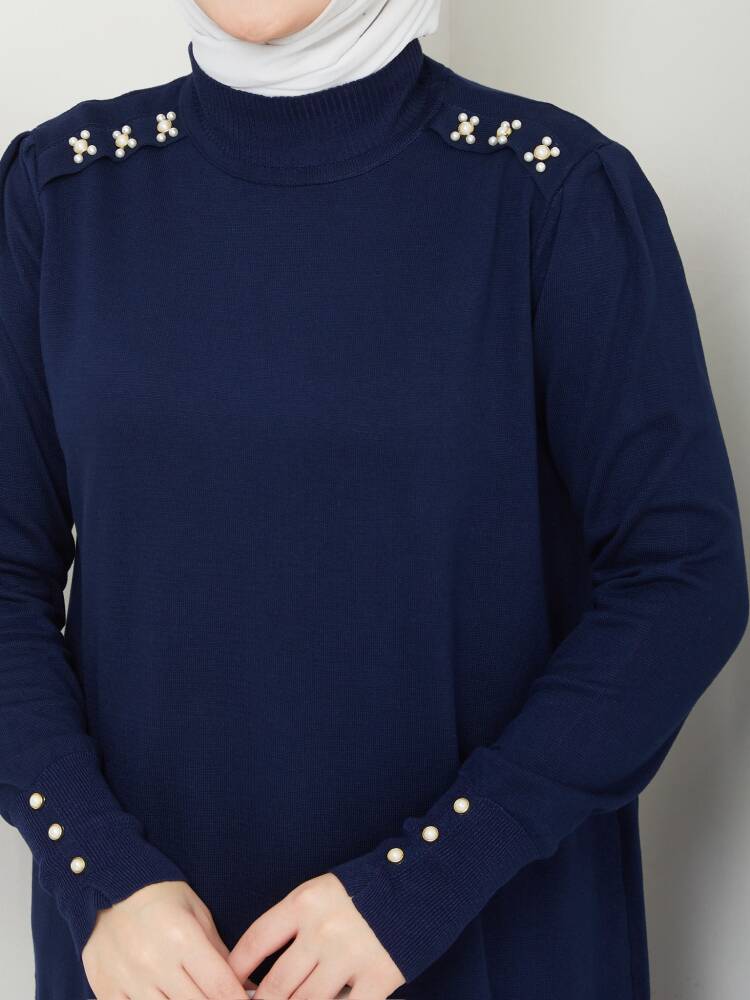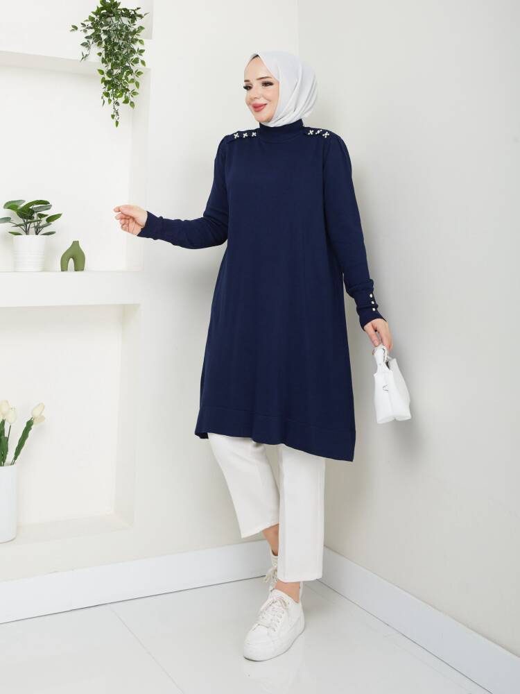 Lacivert Merserize Tüylenmez Şık Tunik